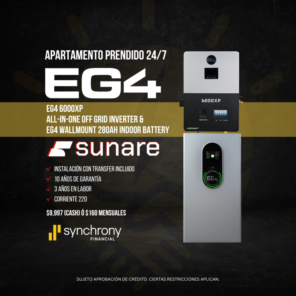 Como distribuidor autorizado de EG4 Electronics en Puerto Rico, SUNARE ofrece soluciones de almacenamiento y generación energética con tecnología avanzada, modular y escalable.